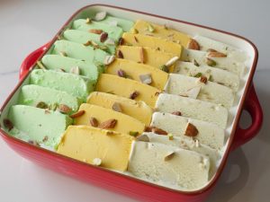 Add pistachios, raisins, almonds, mix well & cook for 1-2 minutes then set aside.
