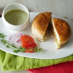 On top bun,add & spread bun kabab chutney,cover and again fry bun kabab.