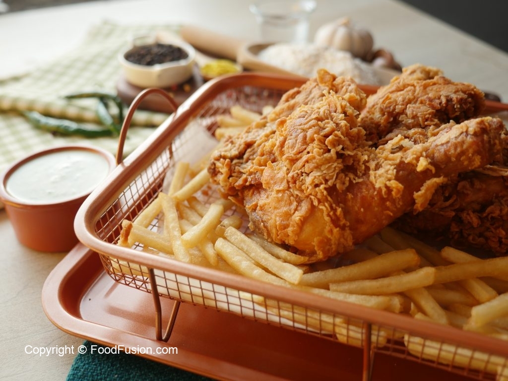 Karhai mein cooking oil (155 C) per garam karein aur chicken pieces ko halki ancch per golden & crispy hunay tak fry ker lein (10-12 minutes).