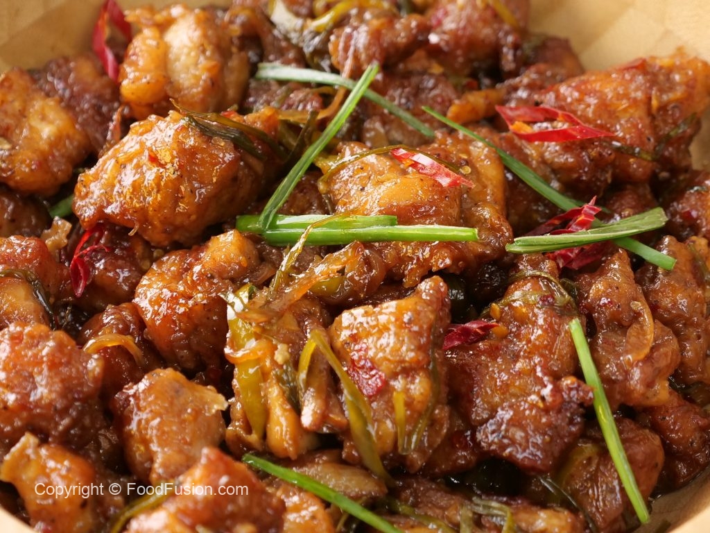 -In a frying pan,heat cooking oil & fry marinated chicken on medium flame until golden & crispy & set aside.