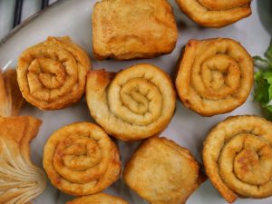 -In a wok,heat cooking oil & fry on low flame until golden & crispy (makes 15).
