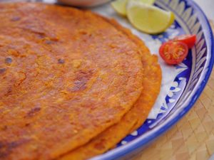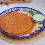 -On a heated griddle, place rolled dough,add desi ghee & fry from both sides until done (makes 5)