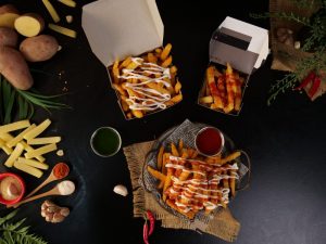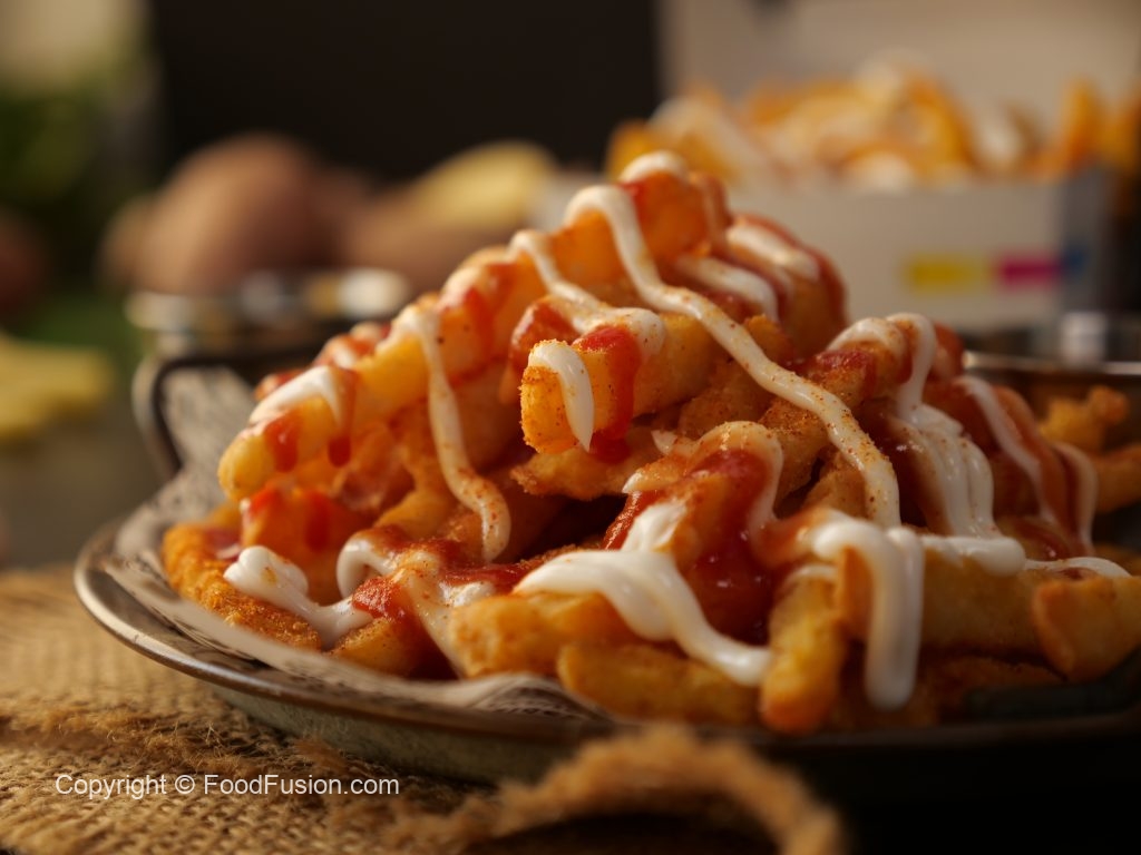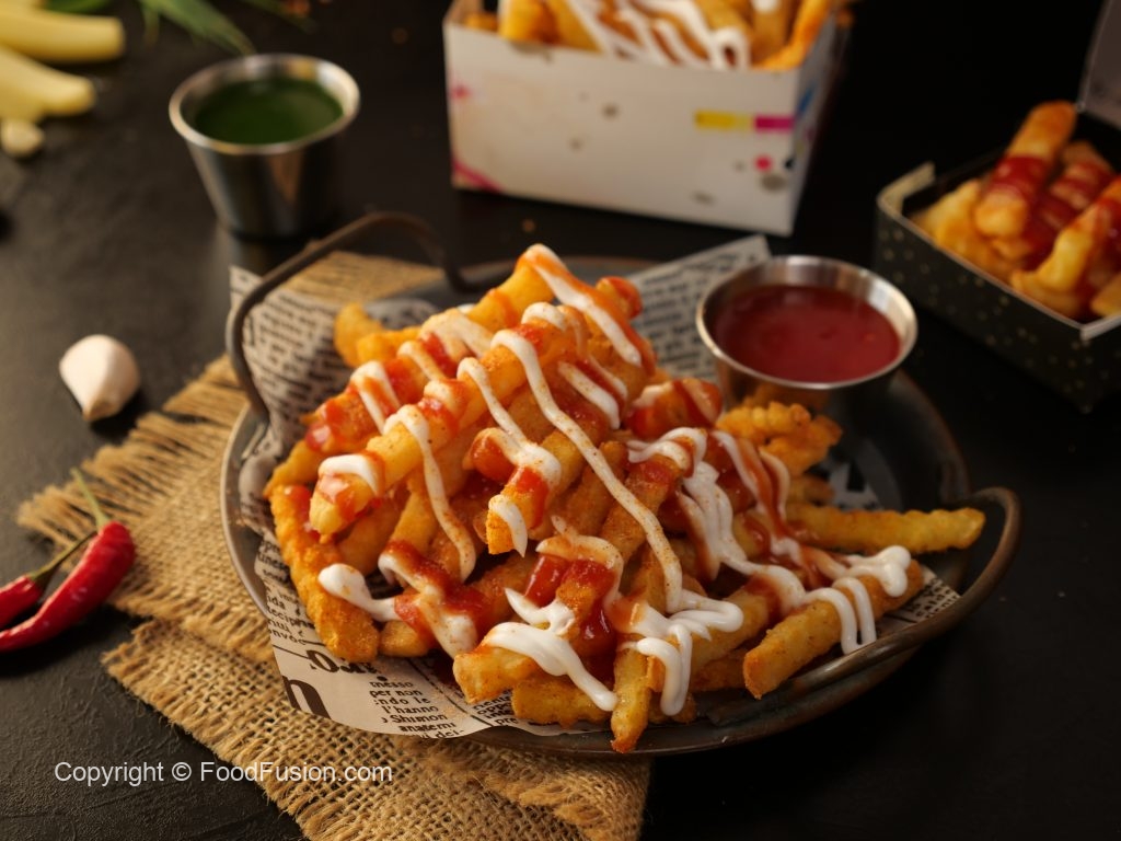 -Drizzle mayonnaise,tomato ketchup,fries masala & serve!