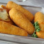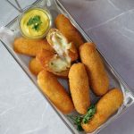 -Coat with all-purpose flour then dip into whisked eggs & coat with breadcrumbs then repeat same coating (makes 8-10 fingers).