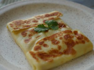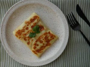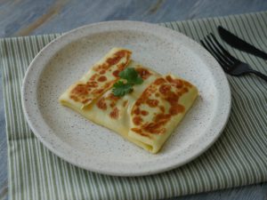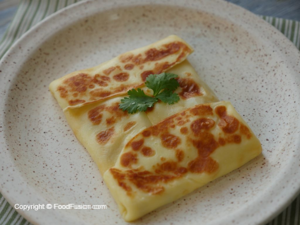 Chulha bund ker dein aur tayyar crepe per cheese slice aur chicken filling rakh ker charon sides ko carefully fold ker lein.