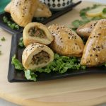 On flour dusted baking tray,place prepared pockets,brush yogurt & milk mixture and sprinkle sesame seeds.