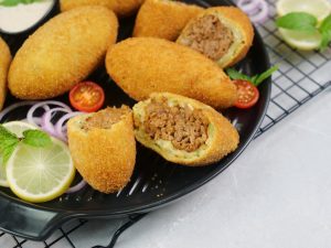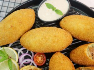 -Fried kabab rakh dein aur potato mixture sa ache tarhan coat ker lein.
