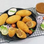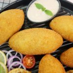 -Coat potato cutlet with all-purpose flour then dip in whisked eggs & coat with breadcrumbs then again dip in whisked eggs & coat with breadcrumbs.