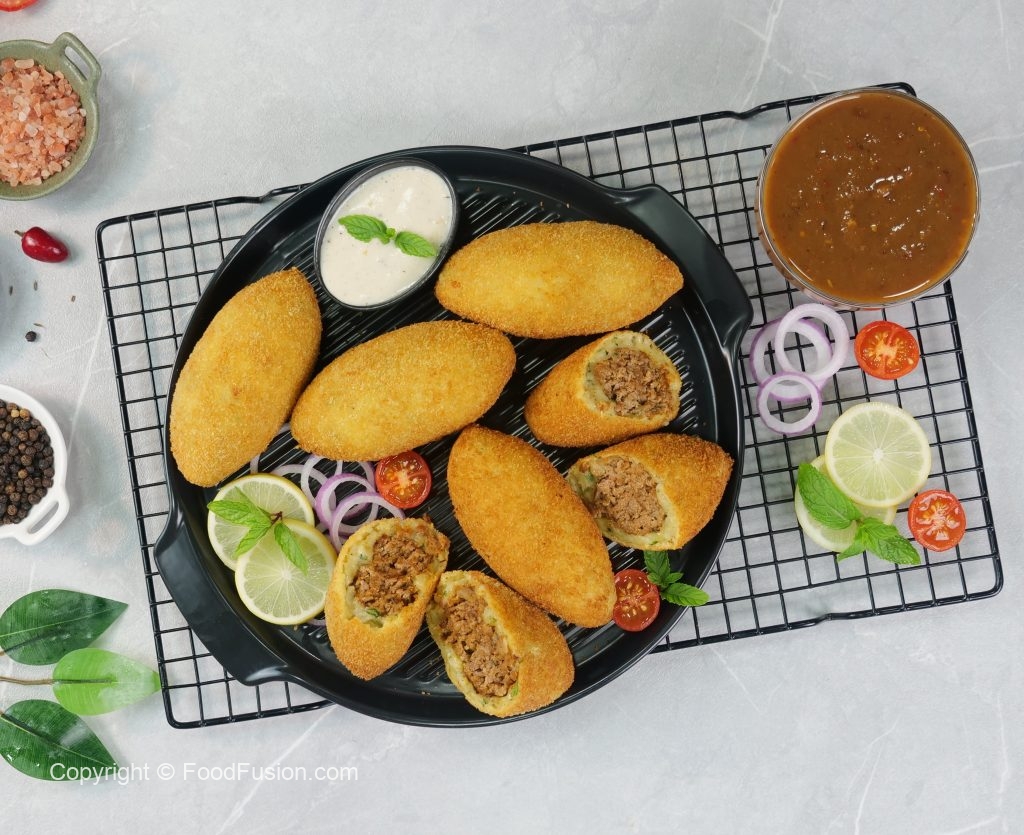 -Karahi mein cooking oil garam karein aur stuffed potato cutlets ko halki ancch per golden & crispy ho Janay tak fry ker lein.