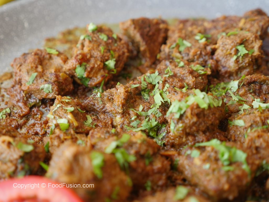 On a girdle brush cooking oil, add marinated beef, cover and cook for 18-20 minutes on low flame.