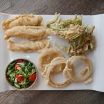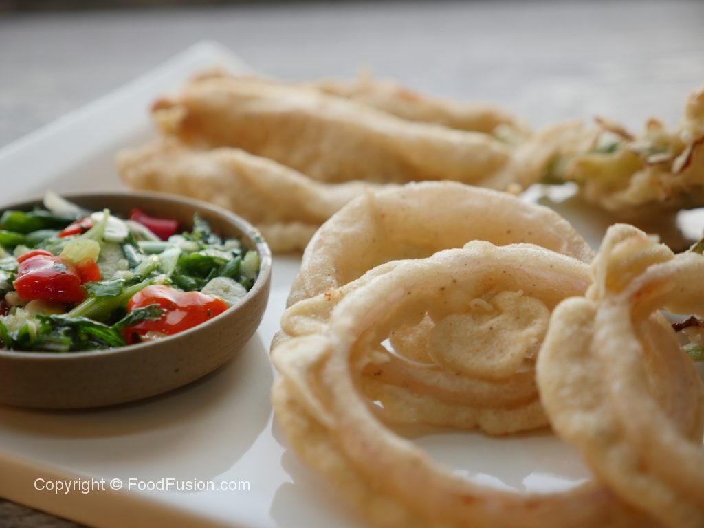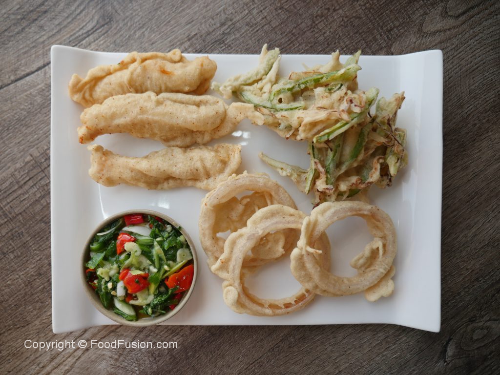 In wok,heat oil and fry batter coated vegetables until golden & crispy.