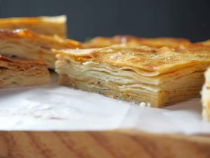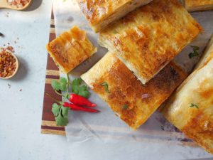 -Apply butter & oil mixture & fold in a square shape.
