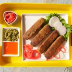 Grease hands with oil and set the mixture on skewers and give them rest for 10 minutes to settle.