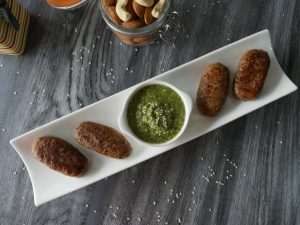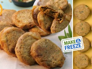 -Take out the kebab mixture from the refrigerator, take kebab mixture & place on greased baking paper, cover with another greased baking paper, spread with your hands.