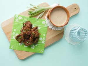 -In a chopper, add onion, garlic, fresh coriander & chop well.
