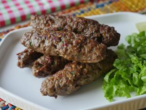 -Add beef mince, paprika powder, black pepper powder, cumin powder, pink salt, red chilli crushed, tomato paste, yogurt, chop well until fine & smooth texture forms.