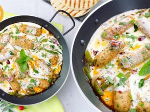 -In a pan butter dalein aur air fried doner kebabs ko 3-4 minutes high flame par cook karen.