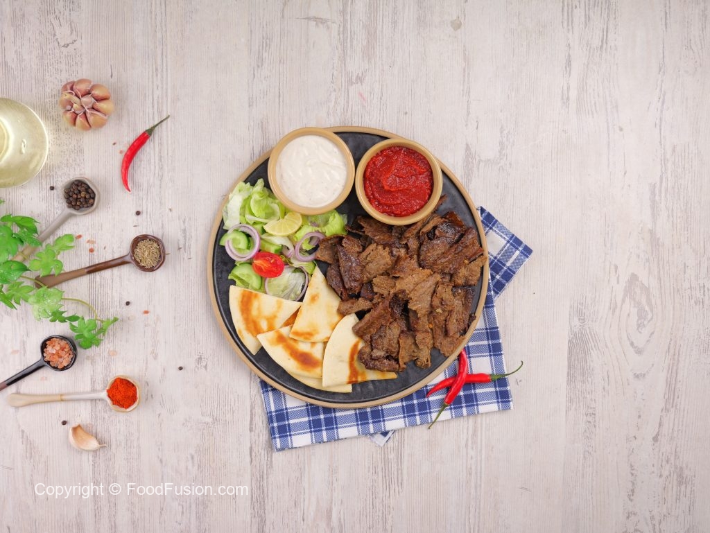 -Serve doner kabab in salad, shawarma, burger, sandwiches, & rice.