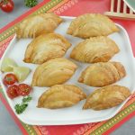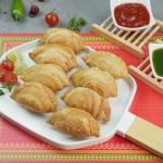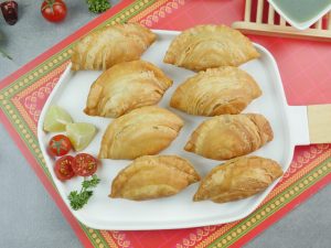 Place the dough on samosa maker,add prepared chicken filling in center,apply water on the edges,press & close samosa maker to make samosa and remove extra dough (makes 24-25).