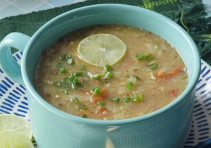 Garnish with lemon slice,green onion leaves & serve hot!