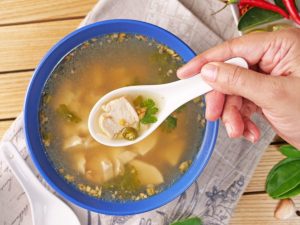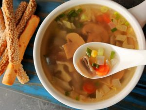 Now add dissolved oats mixture,mix well and cook until soup is thick (approx. 2-3 minutes).