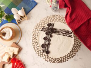 Tayyar cream frosting ko cheesecake per dal dein aur offset spatula ki madad sa set ker lein phir rim ko nikal lein.